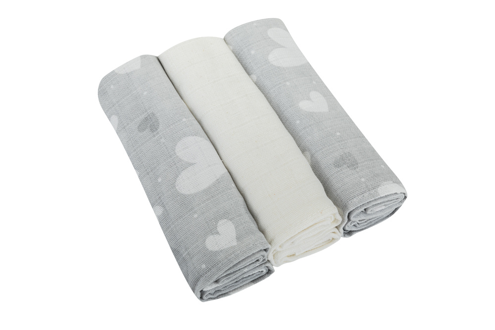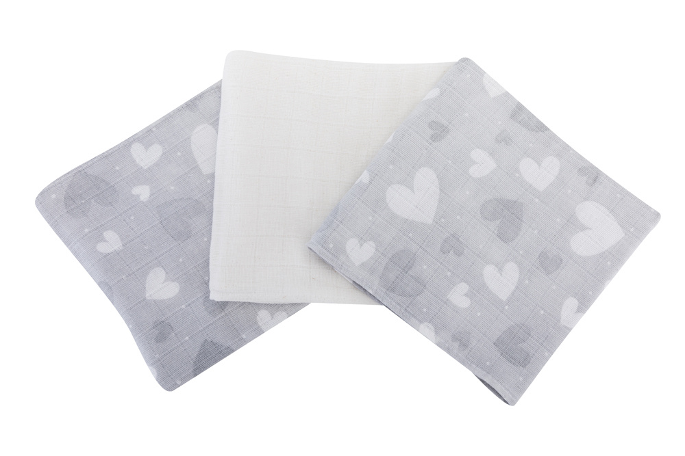 Bomimi Pleny bavlna Premium 140 g/m2 potisk, 80x70, 3ks, SRDÍČKO-ŠEDÁ