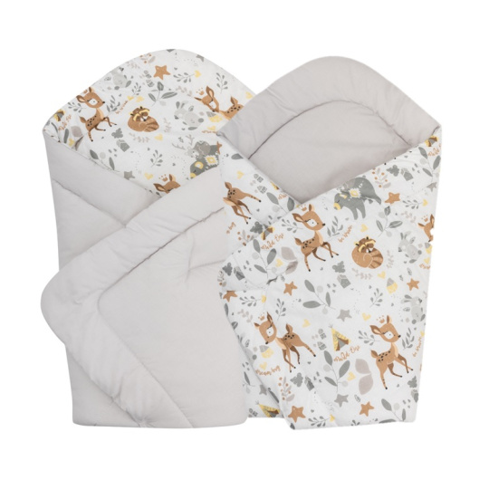 Bavlněný materiál je šetrný k dětské pokožce, polyesterová výplň dodá měkkost a teplo. K dostání v krásných motivech s oboustranným potiskem. Zavinovačku je možné později použít jako praktickou deku do postýlky či do kočárku, nebo jako hrací deku. Uchycení pomocí suchého zipu