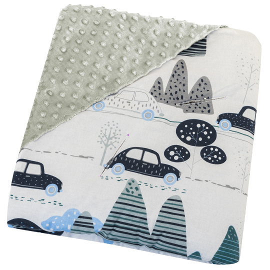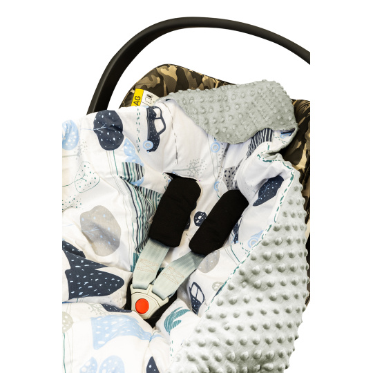 Dětská luxusní deka do autosedačky vyrobena z jedné strany ze 100% bavlny a z druhé z jemného, hřejivého a luxusního materiálu MINKY.