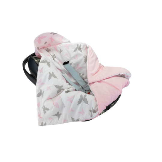 Bomimi Zavinovací deka do autosedačky VELVET motýlci, růžová