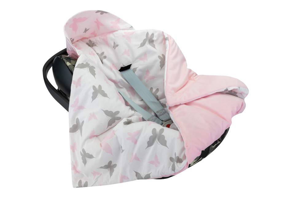 Bomimi Zavinovací deka do autosedačky VELVET motýlci, růžová