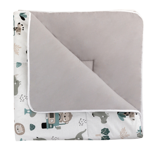 Bomimi HRACÍ deka 120x120, bavlna, oboustranná pojízdná zoo, šedá