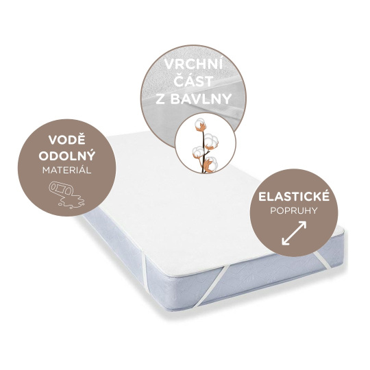 Spodní materiál chrániče zabraňuje vsáknutí tekutin do matrace, zatímco vrchní směs z bavlny udržuje matraci svěží a čistou díky své prodyšnosti.