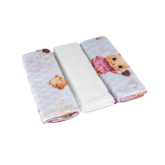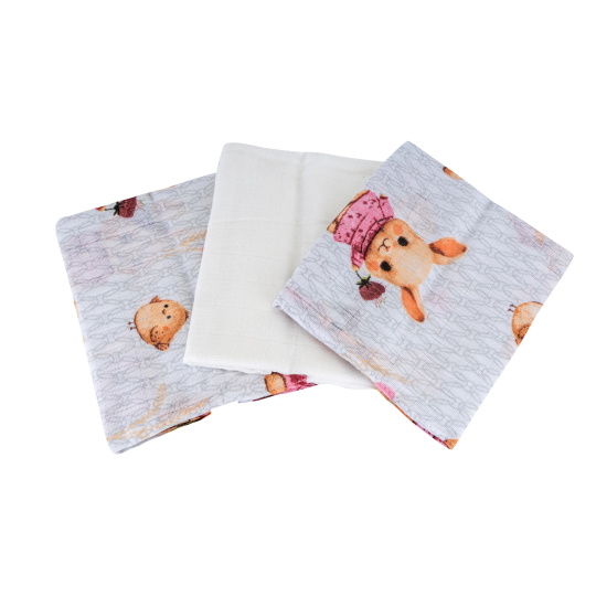 Bomimi Pleny bavlna Premium 140 g/m2 potisk, 80x70, 3ks, ZAJÍČEK-RŮŽOVÁ
