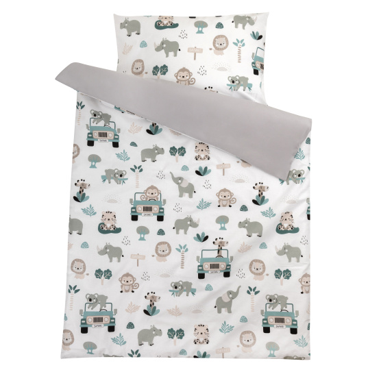Bomimi POVLEČENÍ 120x90 (peřinka + polštářek) POJÍZDNÁ ZOO, ŠEDÁ xy