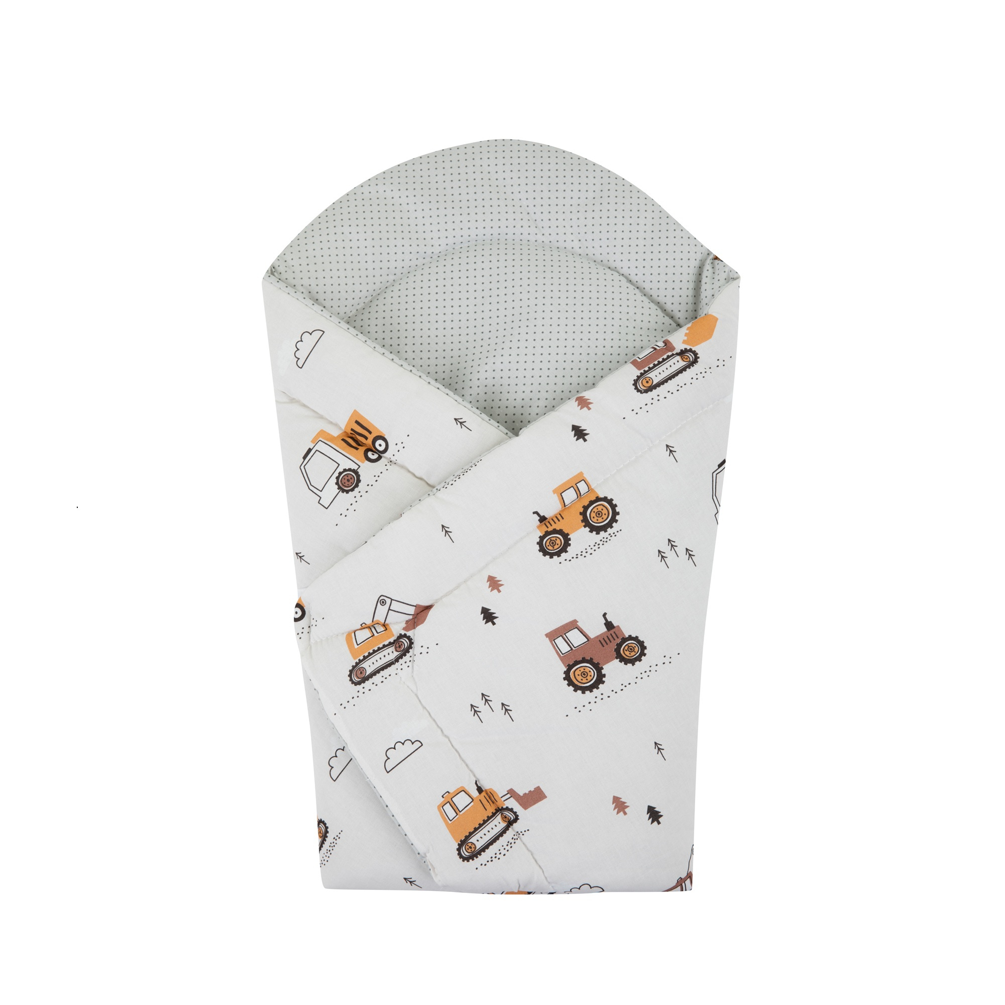 Bavlněný materiál je šetrný k dětské pokožce, polyesterová výplň dodá měkkost a teplo. K dostání v krásných motivech s oboustranným potiskem. Zavinovačku je možné později použít jako praktickou deku do postýlky či do kočárku, nebo jako hrací deku. Uchycení pomocí suchého zipu