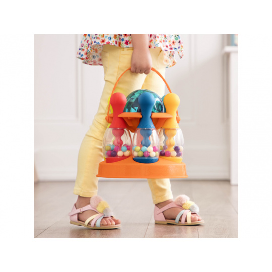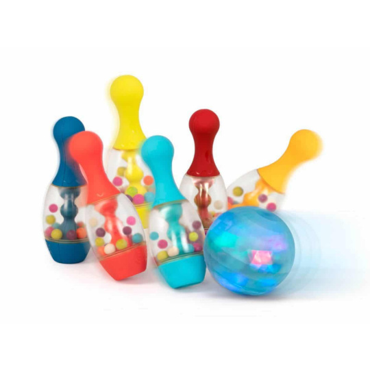 Bowlingová sada v originálním provedení se svítící koulí poskytne dětem spoustu zábavy a zároveň pomůže rozvíjet jejich smysly, koncentraci i obratnost. Praktický stojan umožňuje snadné přenášení i uklízení celé sady. Koule obsahuje nevyměnitelné baterie. Rozměry: kuželky výška 20 cm, koule průměr 11 cm Vhodné pro děti od 2 let.