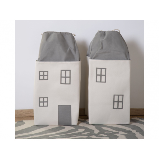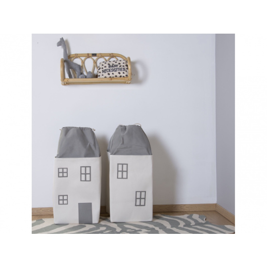 Originální box na hračky v podobě domu se stane krásným doplňkem dětského i obývacího pokoje. Box je vyroben z pevného polyesterového plátna s podšívkou. Stahovací šňůrka umožňuje uzavření boxu. Rozměry: 73 x 32 x 32 cm.