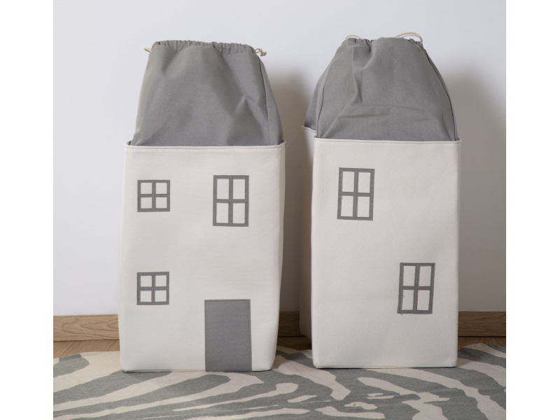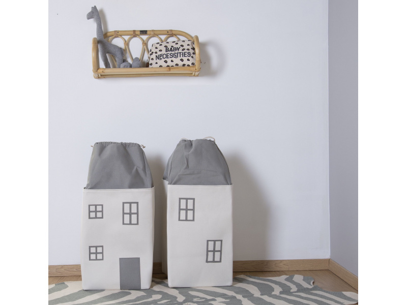 Originální box na hračky v podobě domu se stane krásným doplňkem dětského i obývacího pokoje. Box je vyroben z pevného polyesterového plátna s podšívkou. Stahovací šňůrka umožňuje uzavření boxu. Rozměry: 73 x 32 x 32 cm.