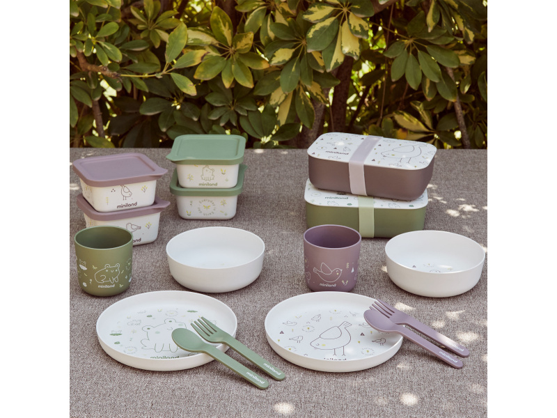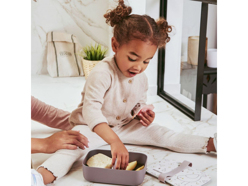 Box na svačinku s krásným potiskem je vyroben z materiálu 100% přírodního původu (PLA). Vnitřní silikonový oddělovač umožňuje oddělené uložení dvou částí dětské svačinky. Oddělovač je vyjímatelný a je možné jej vložit na jakékoli místo uvnitř boxu podle vaší potřeby. Hermetické víčko a silikonový pásek chrání obsah boxu a pomáhá udržet potraviny uvnitř boxu déle čerstvé. Box je vhodný do myčky, lednice i mrazáku. Není určen pro ohřívání v mikrovlnné troubě. Složení: bioplast PLA, silikon Neobsahuje bisfenol A.