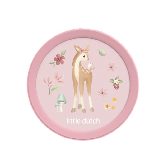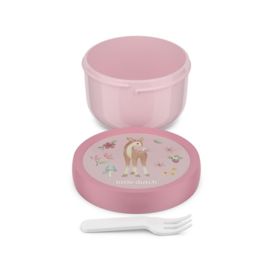 Praktický box na ovoce, nakrájenou zeleninou apod. má spolehlivé těsnicí víčko, které chrání obsah před vysypáním. Součástí boxu je i praktická malá vidlička, aby si vaše dítě mohlo vychutnat svoji svačinku bez zašpinění rukou. Box je součástí designové kolekce hraček a doplňků pro děti Little Dutch Fairy Garden, inspirované životem na zahradě. Rozměry: Ø 6,7 x 10,4 cm Objem: 300 ml Složení: PP Box je možné bez víčka použít pro ohřívání v mikrovlnné troubě. Je vhodný i pro mytí v myčce.