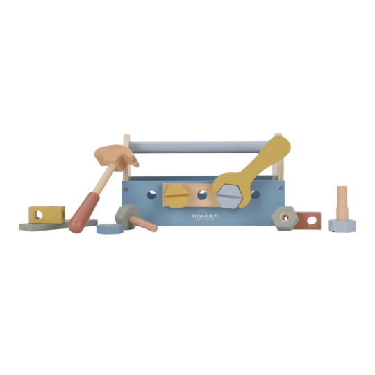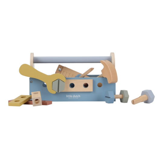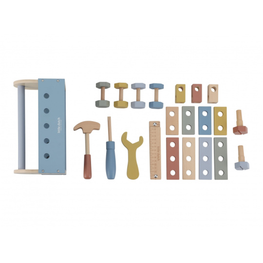 S touto sadou dřevěného nářadí v praktickém přenosném boxu zvládne vaše dítě opravit doma vše, co je potřeba. Po ruce bude mít šroubovák, kladívko i francouzský klíč. V boxu jsou i šrouby, matice a panely s otvory k tréninku zručnosti. Box na nářadí může sloužit i jako zatloukačka. Děti se učí napodobováním svých rodičů a zároveň taková hra rozvíjí kreativitu, soustředění, jemnou motoriku a sociální dovednosti. Hračka je součástí kolekce vysoce kvalitních dřevěných hraček Little Dutch, navržených s důrazem na bezpečnost a originální design. Vyrobeno z odolného FSC certifikovaného dřeva. Rozměry: 12 x 25 x 12 cm Vhodné pro děti od 3 let.