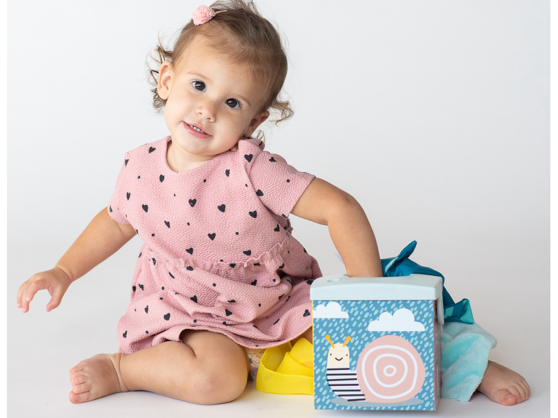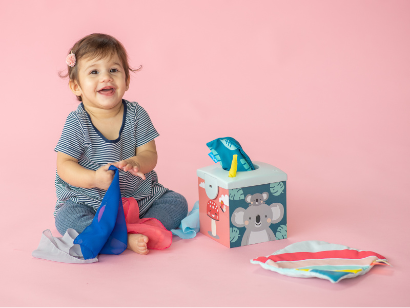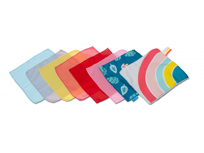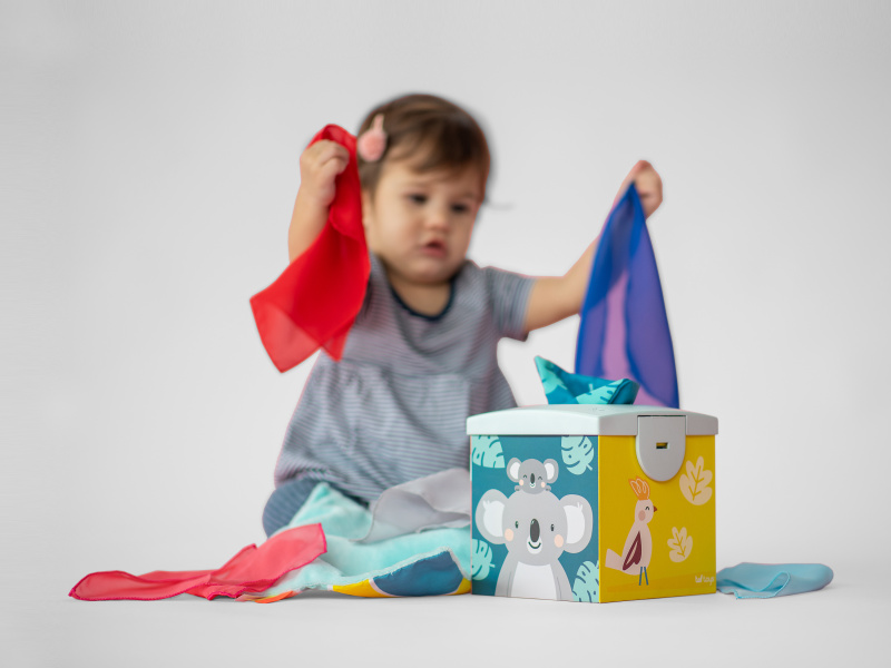 Originální box s otvorem naplněný textilními šátky zajistí vašemu dítěti zábavu na dlouhé hodiny a zároveň podpoří rozvoj jeho smyslů i jemné motoriky. Box obsahuje 10 šátků: 8 šátků různých barev z jemné organzy a 2 šusticí šátky s různorodou texturou a potiskem. Dítě může šátky z boxu vytahovat a znovu je do něj vkládat, zkoumat jejich textury, ve starším věku pak poznávat jejich barvy, počítat je apod. Díky krásným ilustracím s motivy zvířátek se box stane i krásnou dekorací v dětském pokoji. Vhodné pro děti od 9 měsíců.