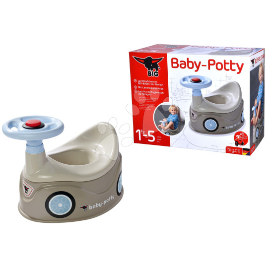 Naučte své dítě chodit na nočník díky originálnímu nočníku ve tvaru autíčka Baby Loo s otočným volantem a funkčním klaksonem, který vydává zvuk. Nočník BIG v podobě šedého autíčka má ergonomicky tvarované sedátko a vysokou opěrku zad, takže dítě je ve stabilizované podobě i během delšího sezení na nočníku. Rozptýlení mu poskytne modrý volant, který lze otáčet do stran a po provedení potřeby vás dítě může jednoduše zavolat zatroubením na klakson. Nočník je ozdoben nálepkami, díky čemuž připomíná skutečné závodní autíčko.