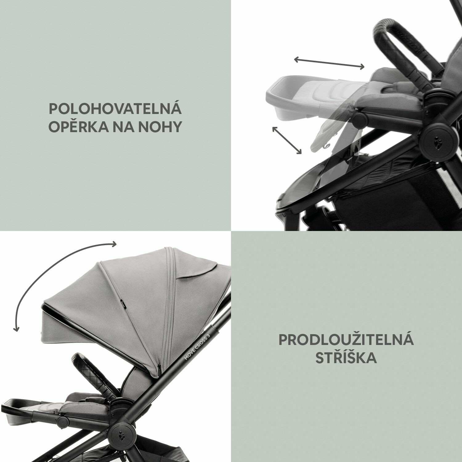• Prodloužitelná opěrka nohou, která roste s vaším dítětem