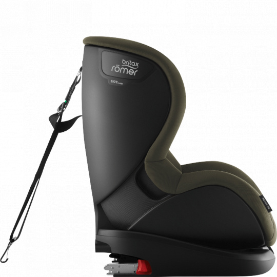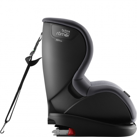 Top tether ve tvaru „V“ zajistí díky dvěma kotevním bodům větší stabilitu a bezpečí než autosedačka se standardním upevňovacím popruhem a poskytuje dětem i více prostoru na nohy.