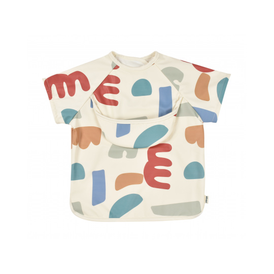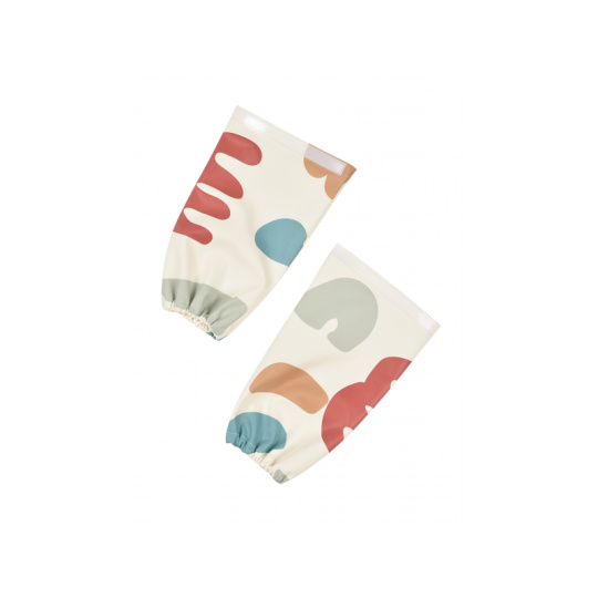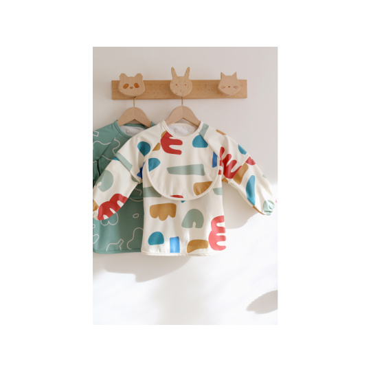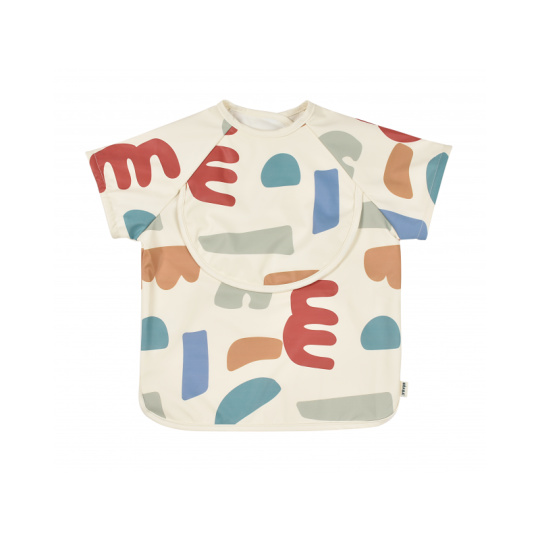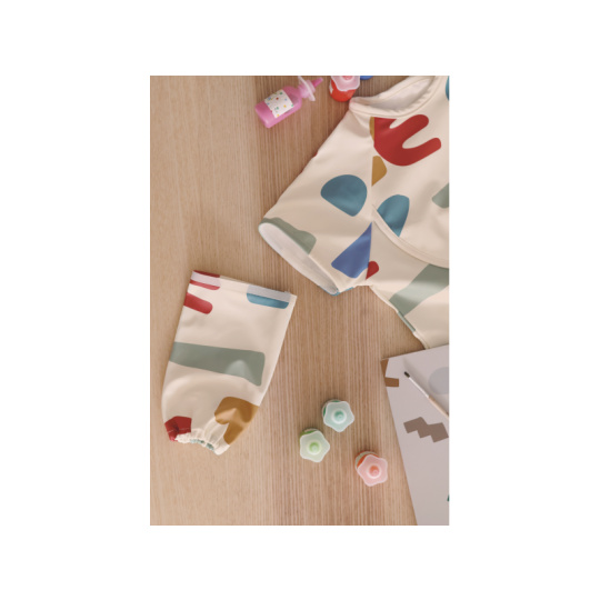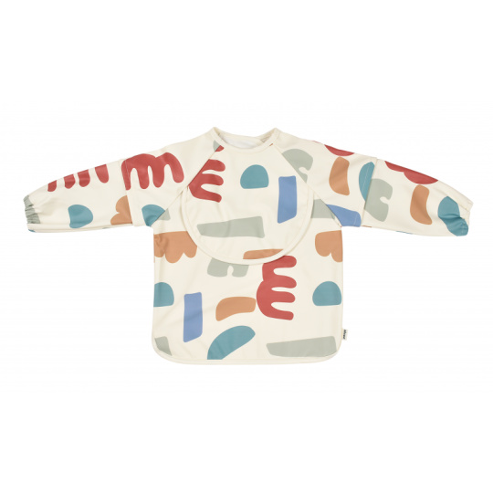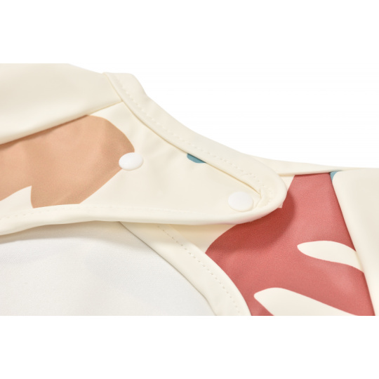 Bryndák s odnímatelnými rukávy chrání dětské oblečení při stolování i výtvarných aktivitách. Rukávy lze snadno oddělit i znovu přidělat. Rozkládací kapsa na přednní straně pomáhá zachytávat drobečky i kapky při dětském stolování, když kapsu např. při malování nepotřebujete, stačí ji nechat složenou. Nastavitelné zapínání na druky za krkem umožňuje snadné oblékání i přizpůsobení bryndáku velikosti dítěte. Elastické zakončení rukávů poskytuje pohodlí při nošení. Bryndák je vyroben z příjemného, měkkého materiálu, který při znečištění stačí otřít vlhkou houbičkou a je možné jej i prát v pračce. Vhodné pro děti od 4 měsíců do 4 let.