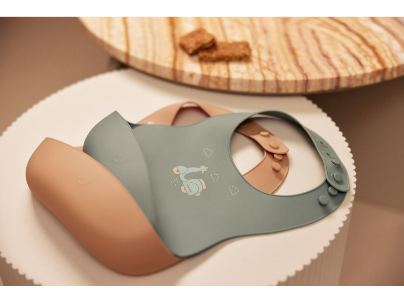 Bryndák z jemného, pružného silikonu s krásným potiskem je vybaven širokou kapsou pro zachycení drobečků i kapek. Dokonale ochrání oblečení dítěte již od prvních pokusů o samostatné stolování. Zapínání za krkem umožňuje snadno upravit velikost kolem krku. Bryndák je omyvatelný a je možné jej mýt i v myčce. Rozměry: 31 x 20 x 3 cm Vhodné pro děti od 4 měsíců.
