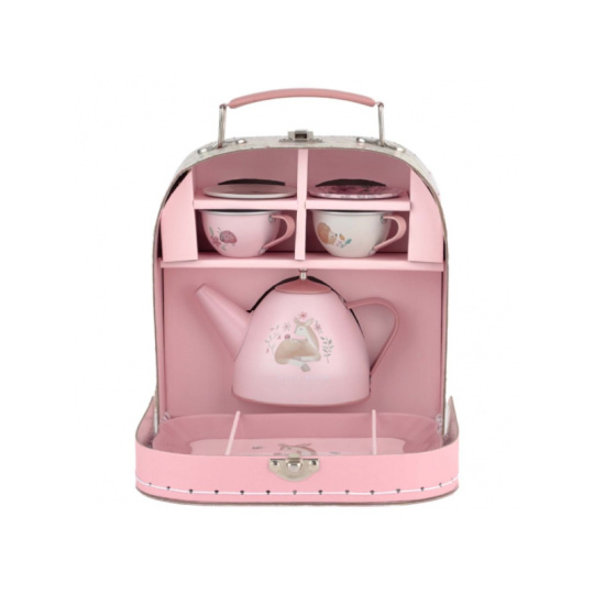 Máte chuť na šálek čaje? Otevřete kufřík a připravte si s vaším dítětem dokonalý večírek s krásným čajovým setem z kolekce Fairy Garden. Hraní rolí pomáhá rozvíjet dětskou představivost a rozvoj sociálních dovedností. Sada se skládá z kufříku, dvou čajových šálků, dvou podšálků, tácu a konvice s víčkem v kovovém provedení s krásným potiskem. Čajový set je součástí designové kolekce hraček a doplňků Little Dutch Fairy Garden inspirované životem na zahradě. Rozměry: 17,5 x 17 x 9 cm Vhodné pro děti od 3 let.