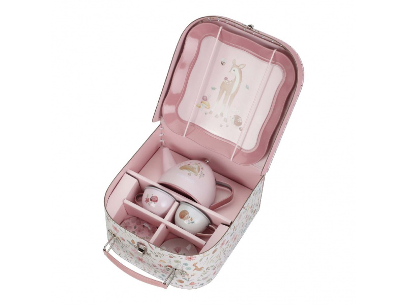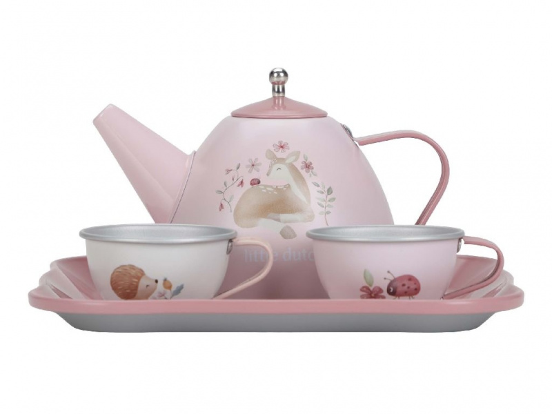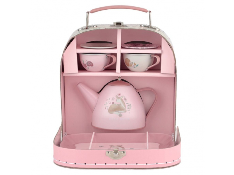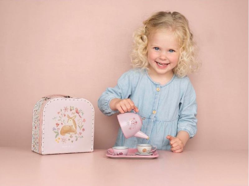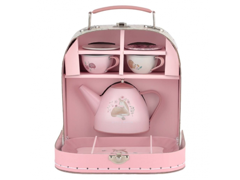 Máte chuť na šálek čaje? Otevřete kufřík a připravte si s vaším dítětem dokonalý večírek s krásným čajovým setem z kolekce Fairy Garden. Hraní rolí pomáhá rozvíjet dětskou představivost a rozvoj sociálních dovedností. Sada se skládá z kufříku, dvou čajových šálků, dvou podšálků, tácu a konvice s víčkem v kovovém provedení s krásným potiskem. Čajový set je součástí designové kolekce hraček a doplňků Little Dutch Fairy Garden inspirované životem na zahradě. Rozměry: 17,5 x 17 x 9 cm Vhodné pro děti od 3 let.