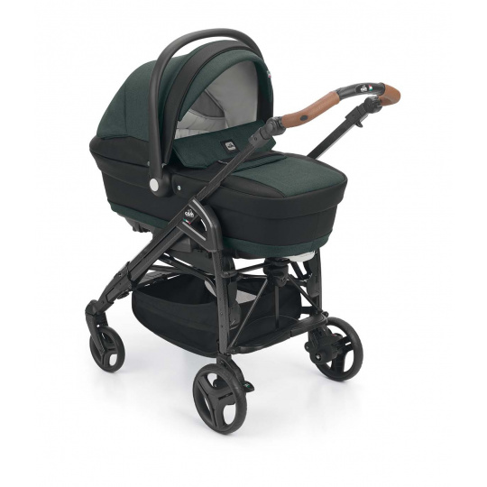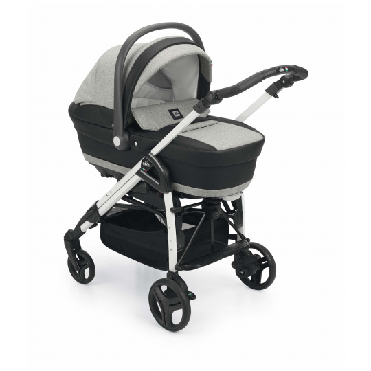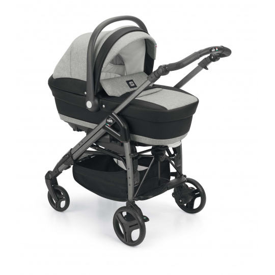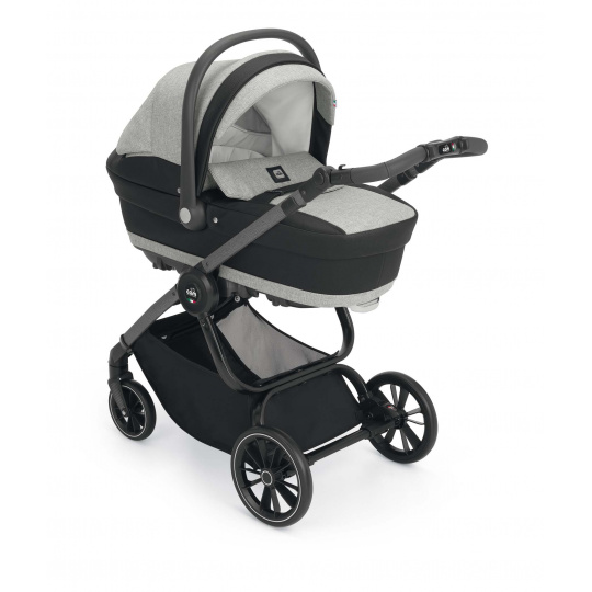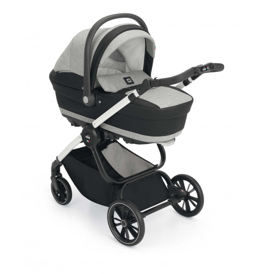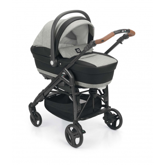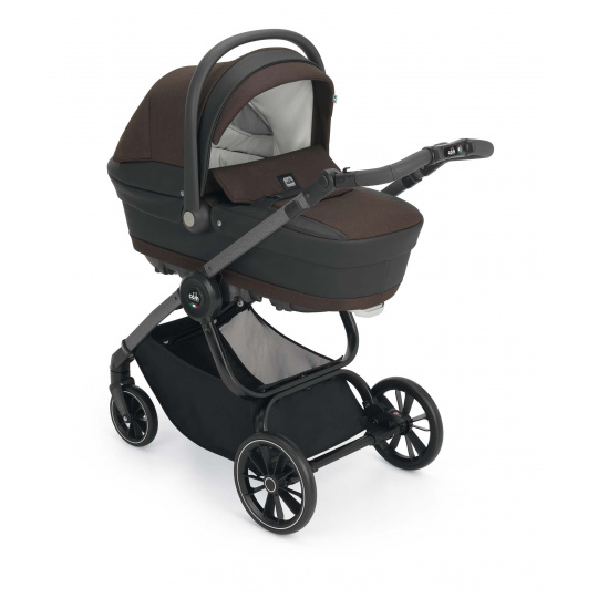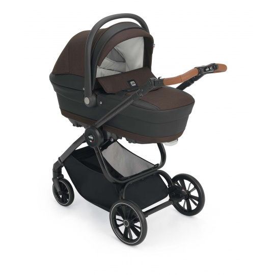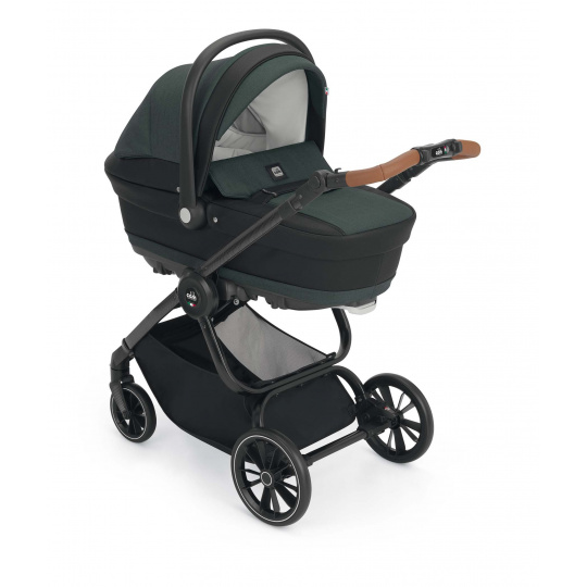 Prostorná elegantní korba je potažená texturovanou tkaninou s ozdobnými prvky z eko kůže. Nánožník hluboké korby lze snadno odepnout pomocí zipů. Díky větrání na boudičce je ideální i pro letní měsíce. Korbu lze po vyklopení vzpěr na spodku vaničky využívat i jako kolébku. Pomocí pojistky na spodku korby je možné výškově polohovat hlavičku dítěte. Korba má jednoduchý systém odepnutí z podvozku, pouze pomocí jedné pojistky, pro ještě větší bezpečí při manipulaci s korbou a dítětem.