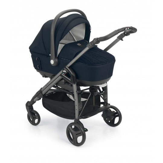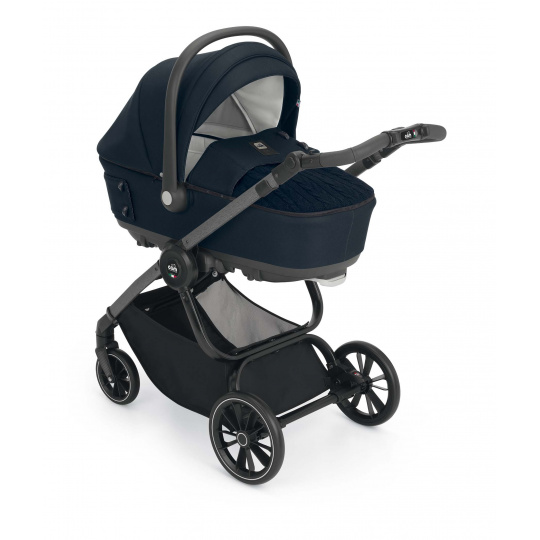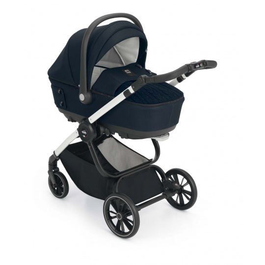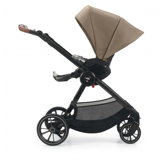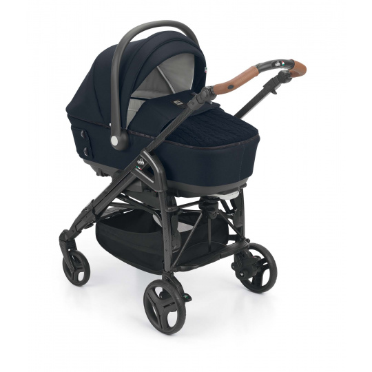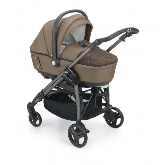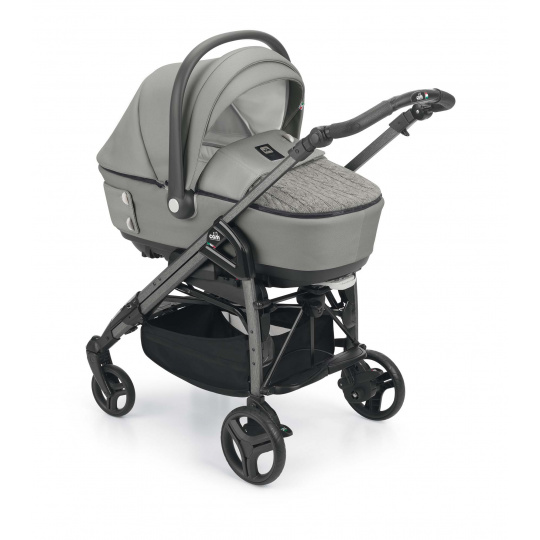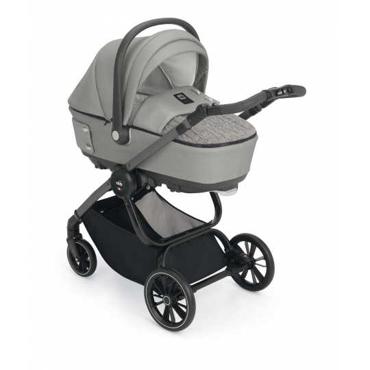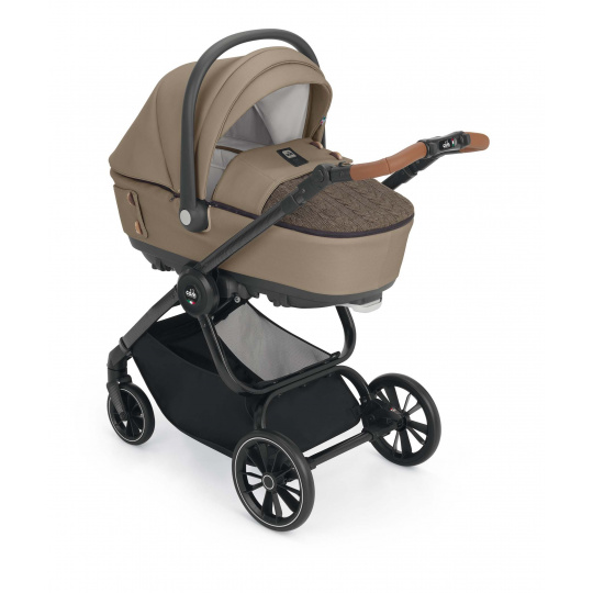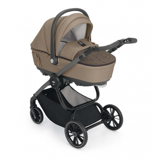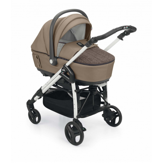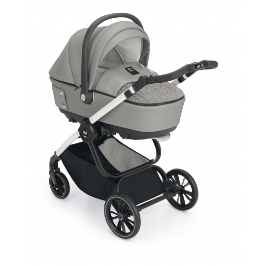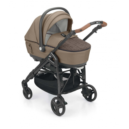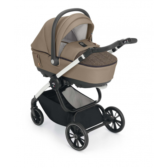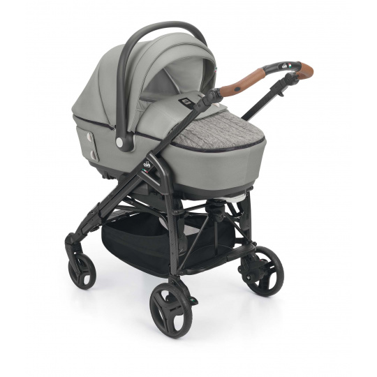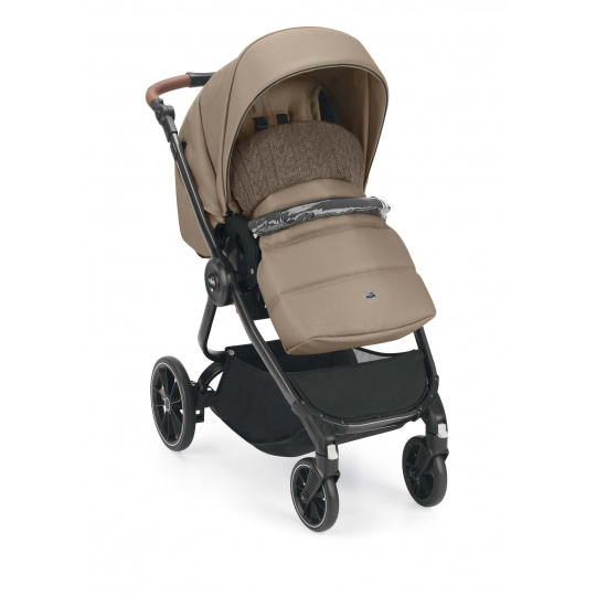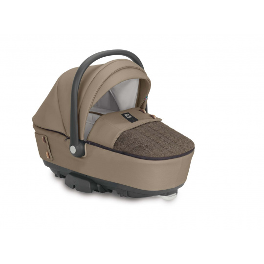 Prostorná korba s moderním vzhledem a nánožníkem v měkkém pleteninovém provedení doplněným o ozdobné kostěné knoflíky. Nánožník korby lze snadno odepnou pomocí zipů. Díky větrání na boudičce je ideální i pro letní měsíce. Korbu lze po vyklopení vzpěr na spodku vaničky využívat i jako kolébku. Pomocí pojistky na spodku korby je možné výškově polohovat hlavičku dítěte. Korba má jednoduchý systém odepnutí z podvozku, pouze pomocí jedné pojistky, pro ještě větší bezpečí při manipulaci s korbou a dítětem.