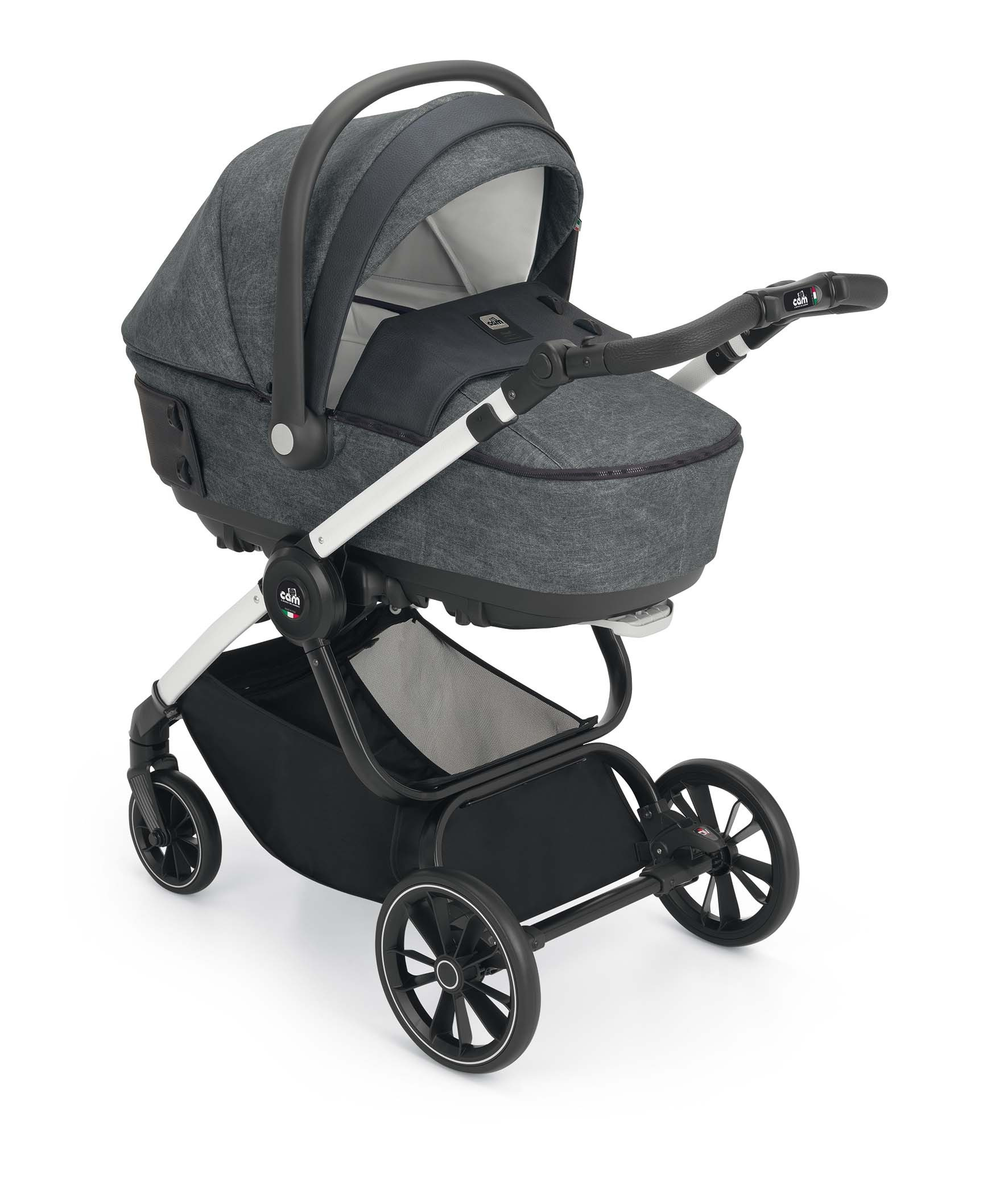 Prostorná hluboká korba s moderním vzhledem a doplňky v podobě zajímavých knoflíků. Nánožník hluboké korby lze snadno odepnout pomocí zipů. Díky větrání na boudičce je ideální i pro letní měsíce. Korbu lze po vyklopení vzpěr na spodku vaničky využívat i jako kolébku. Pomocí pojistky na spodku korby je možné výškově polohovat hlavičku dítěte. Korba má jednoduchý systém odepnutí z podvozku, pouze pomocí jedné pojistky, pro ještě větší bezpečí při manipulaci s korbou a dítětem.