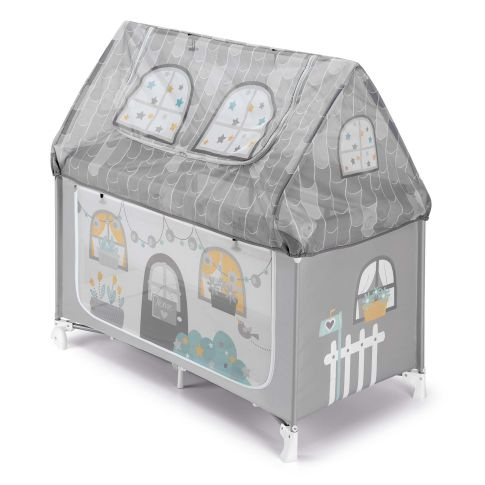 Zabavte dítě na dlouhé hodiny v bunkru ve tvaru domečku. Praktická postýlka má pevnou kovovou konstrukci a je potažena měkkou elastickou tkaninou. Oba boky domečku jsou rozepínací a jsou ušité z průsvitného síťovinového materiálu, takže na dítě vždycky uvidíte a snadno se k němu dostanete.