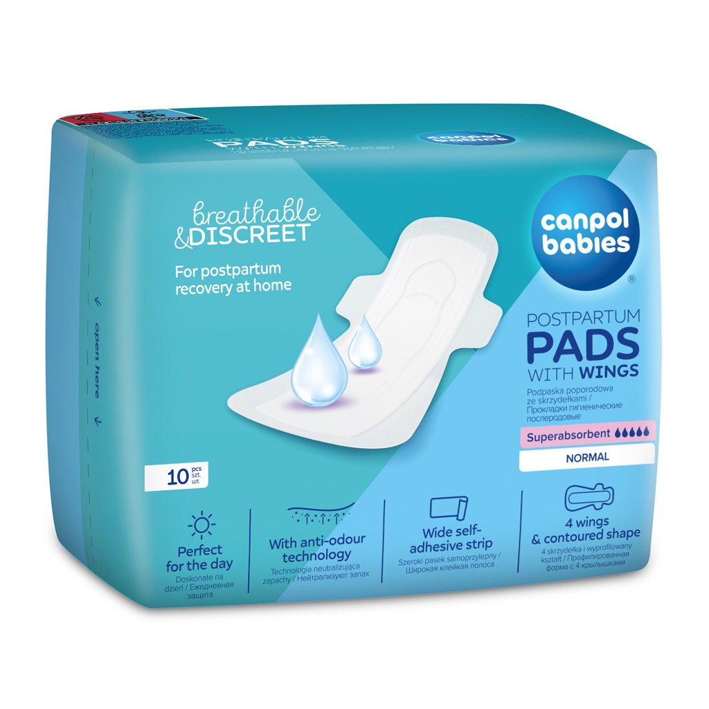Superabsorpční poporodní vložky Canpol babies s křidélky jsou perfektním řešením pro ženy v poporodním období k použití doma po opuštění porodnice. Poporodní vložky s křidélky jsou tenčí a diskrétnější než běžné poporodní vložky, ale také vysoce savé a prodyšné. Běžné vložky v této situaci většinou nefungují a nestačí. Velikost poporodních vložek s křidélky byla upravena tak, aby dobře chránily proti protečení. Poporodní vložky Canpol babies s křidélky mají tloušťku pouze 2,2 mm, ale poskytují až 100% ochranu proti protečení a diskrétnost. Ultra absorpční vložka rychle absorbuje tekutiny a zadržuje vlhkost uvnitř, čímž zajišťuje dlouhotrvající pocit sucha a pohodlí. Profilovaný tvar, 4 křidélka a široký lepicí proužek navíc udrží podložku na místě při pohybu a každodenních aktivitách. Měkká vrchní vrstva těsně přilne k výplni poporodní vložky, nedelaminuje se, zabraňuje přilnutí k pokožce a podráždění. Je šetrná k pokožce a zcela prodyšná, zatímco technologie proti zápachu dodává matce pocit svěžesti. V balení je 10 kusů. Vlastnosti: - Poporodní vložky s křidélky na den. - Velikost poporodních vložek: délka 34 cm, tloušťka 2,2 mm - Zvýšený komfort během poporodního období doma – během dne. - Ultra savá vložka – rychle absorbuje tekutiny a zadržuje vlhkost uvnitř vložky, čímž zajišťuje dlouhotrvající pocit sucha. - Výjimečně měkké a prodyšné – chrání pokožku před podrážděním. - 4 křidélka a profilovaný tvar pro účinnou ochranu a větší pohodlí. - Široký lepicí pásek drží vložku na místě. - S technologií neutralizace zápachu. Adresa výrobce: Canpol Sp. z o.o. 02-884 Warszawa, ul. Puławska 430, Polska Słubica B, ul. Graniczna 4, 96-321 Żabia Wola, Poland tel. (+48 46) 858 00 00 fax: (+48 46) 858 00 01 babies@canpolbabies.com www.canpolbabies.com