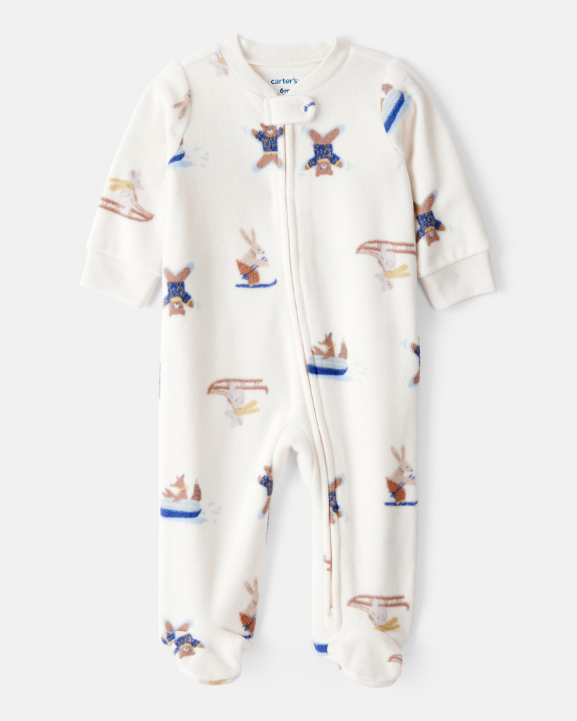 CARTER'S Overal na zip fleece Sleep & Play ivory Animal ski chlapec NB/vel.56