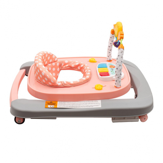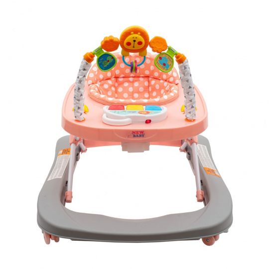 Dětské chodítko NEW BABY v moderních barvách se čtyřmi silikonovými kolečky a bezpečnostními podložkami pomáhá dítěti se stabilitou při chůzi a zároveň přináší svět zábavy díky zabudovanému barevnému piánku a oblouku s veselými hračkami. Piánko obsahuje 3 klávesy a je vyndávací. Oblouk obsahuje otáčecí hračky s motivy zvířátek a korálky. Chodítko je nastavitelné do několika poloh a má velice pohodlný potah, který lze vyprat a je v zadní části vyztužený.
