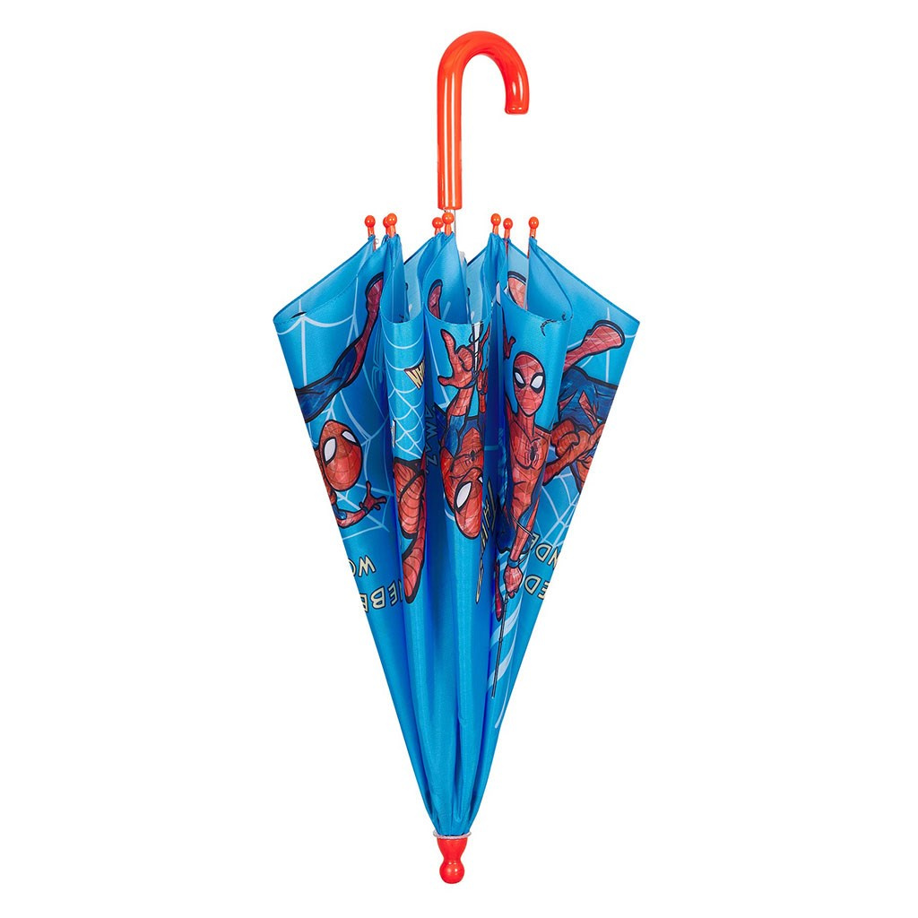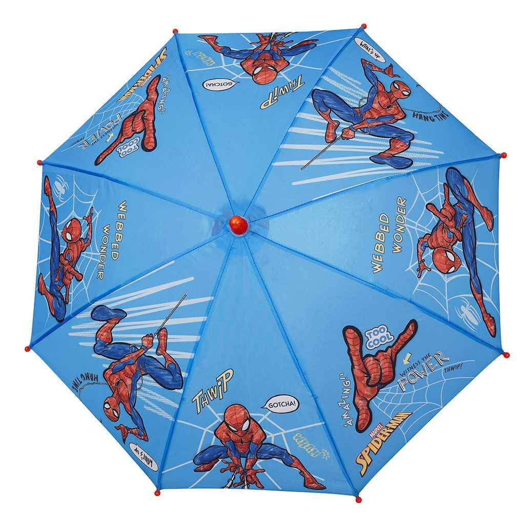Deštník s motivem oblíbeného dětského akčního hrdiny Spidermana od Marvel Comics. Odolný vůči větru, manuální otevírání, kvalitní pevná a odolná konstrukce. Průměr deštníku: 66 cm, váha 157 g. Vhodné pro děti ve věku od 2 do 5 let. Materiál: Vrchní materiál: 100% POE (Polyolefin elastomer)/ rukojeť: plast, konstrukce: sklolaminát/kov.