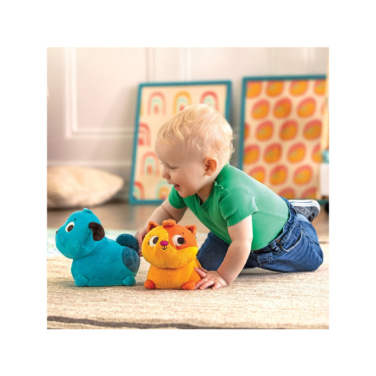 Interaktivní plyšový pejsek se po jemném stisknutí na zádech pohybuje po místnosti a štěká. Podněcuje dítě k lezení a zajistí mu spousty zábavy. Hračka pomáhá rozvíjet motorické dovednosti dítěte a seznamuje ho s konceptem příčiny a následku. Baterie 3xAAA jsou součástí výrobku. Vhodné pro děti od 6 měsíců.