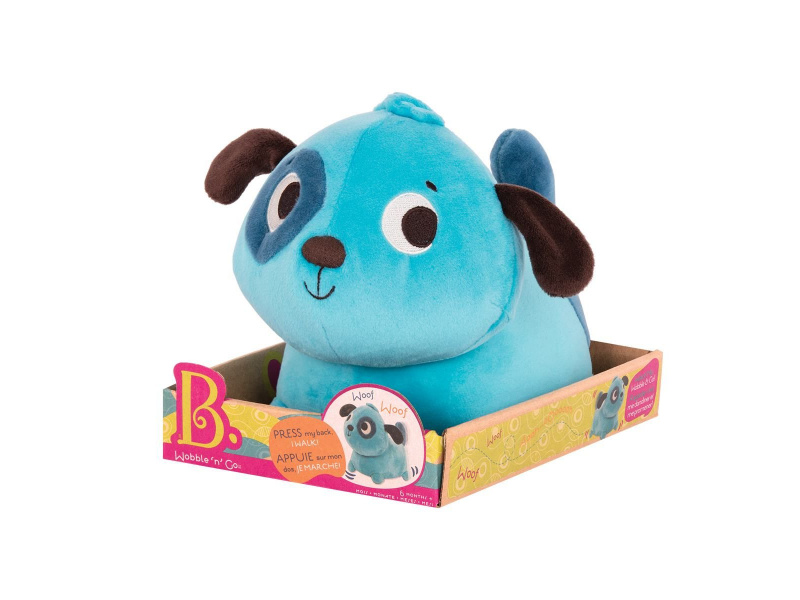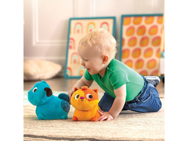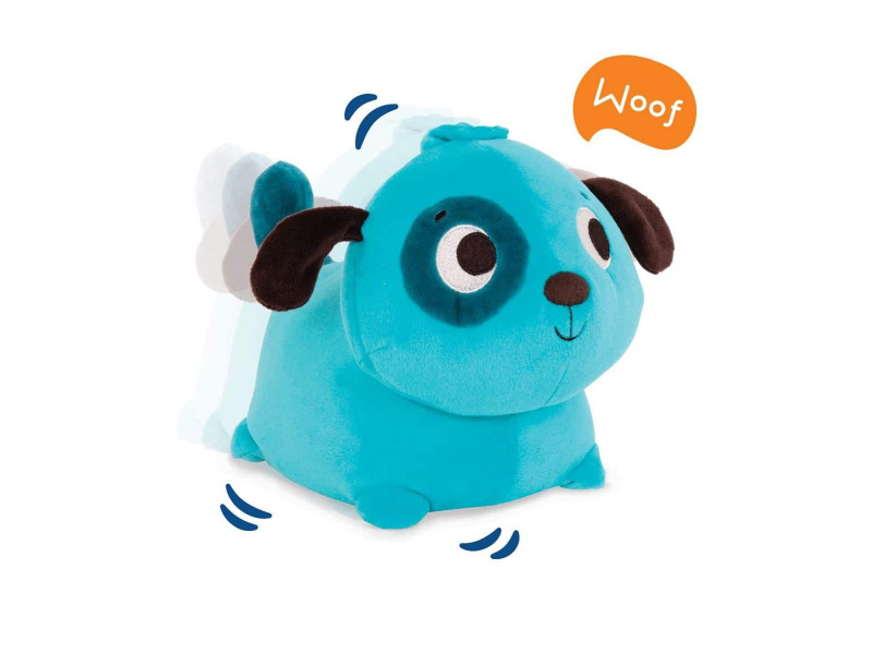 Interaktivní plyšový pejsek se po jemném stisknutí na zádech pohybuje po místnosti a štěká. Podněcuje dítě k lezení a zajistí mu spousty zábavy. Hračka pomáhá rozvíjet motorické dovednosti dítěte a seznamuje ho s konceptem příčiny a následku. Baterie 3xAAA jsou součástí výrobku. Vhodné pro děti od 6 měsíců.