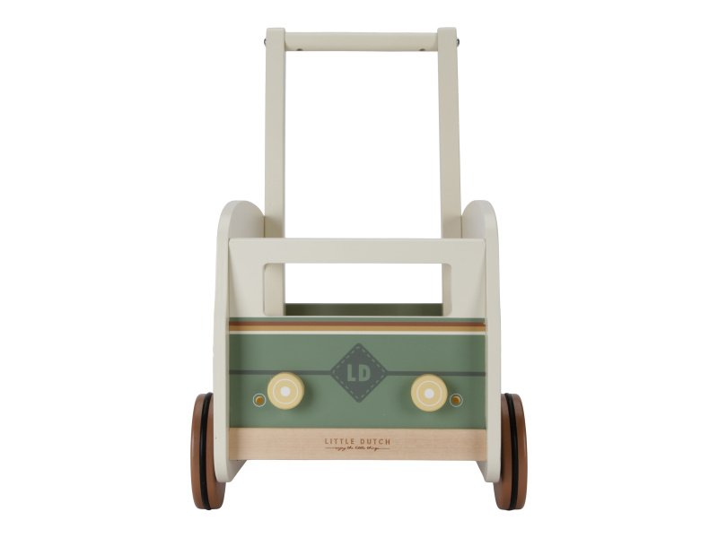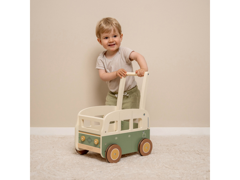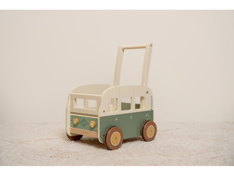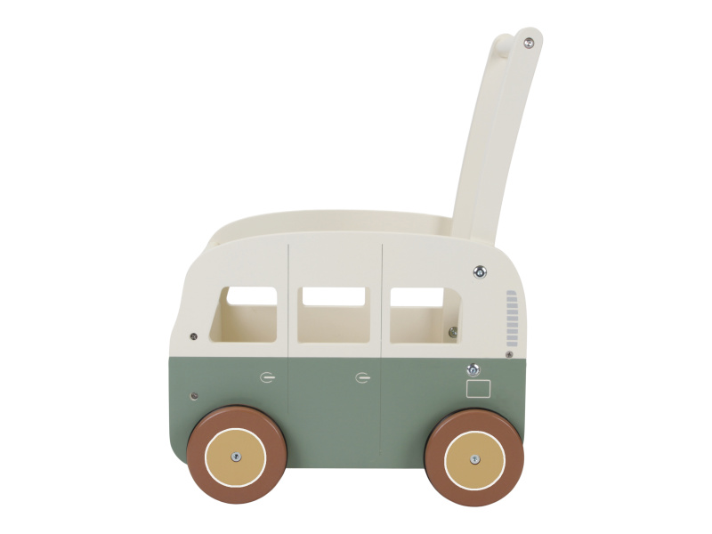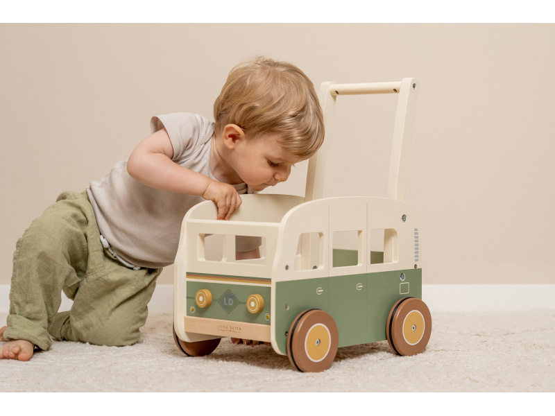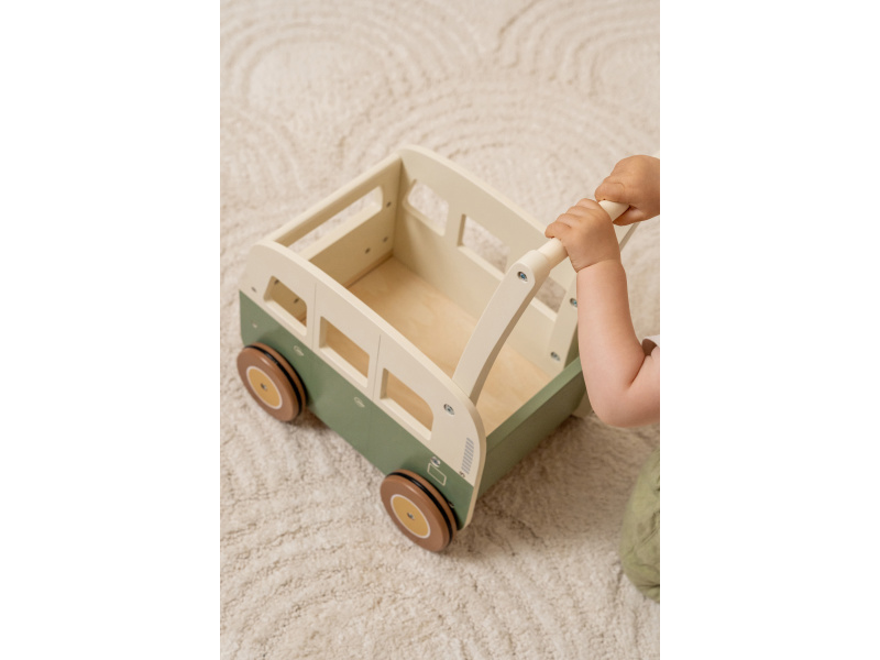 Dřevěný vozík v podobě retro dodávky je jako stvořený pro převážení oblíbených hraček, plyšáků apod. Vozík využijete i pro společné uklízení hraček a bude sloužit i jako krásná dekorace v dětském pokoji. Gumové kroužky na kolečkách ochrání vaši podlahu před poškozením a jsou bezpečná pro použití v interiéru. Rozměry: 58 x 34 x 20 cm Vhodné pro děti od 12 měsíců.
