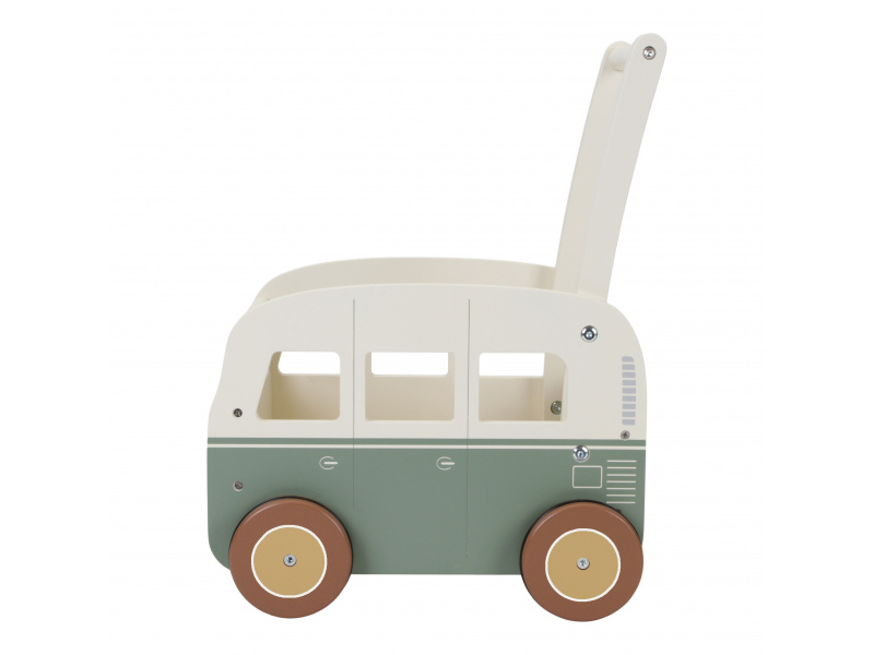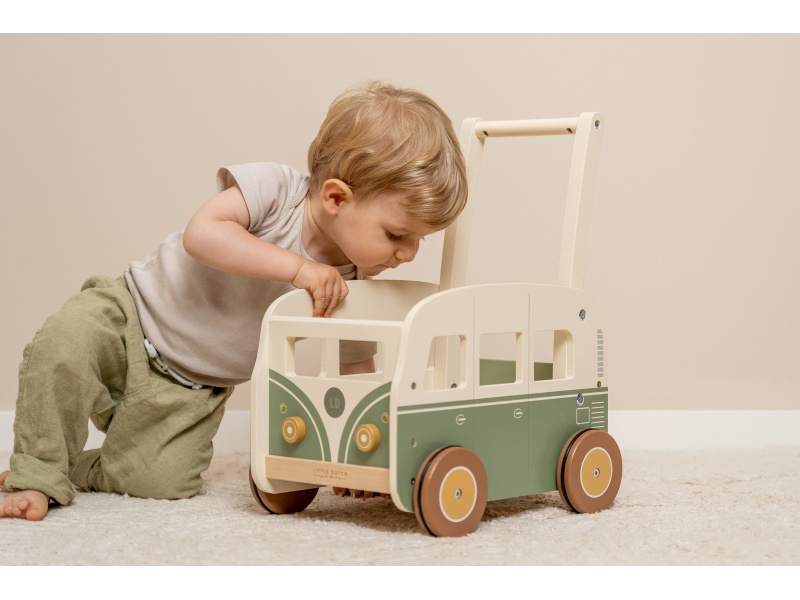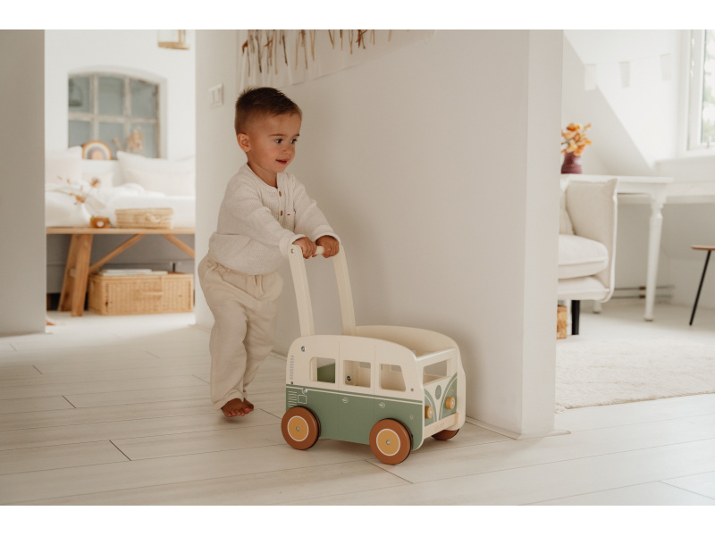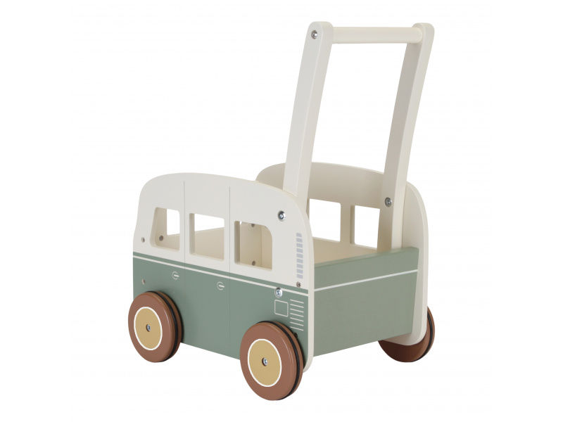 Chodítko se stabilní konstrukcí v podobě klasické dodávky je ideální pro trénování chůze dětí od 12 měsíců, které jsou téměř připraveny učinit první kroky. Užijte si společně radostné okamžiky, když vaše dítě poprvé přejde celou místnost. Díky svému provedení chodítko slouží i jako vozík, do kterého si dítě může naložit své oblíbené hračky. Chodítko pomáhá rozvoji rovnováhy, koordinace a motoriky dítěte. Gumové kroužky na kolečkách ochrání vaši podlahu před poškozením a jsou bezpečná pro použití v interiéru. Rozměry: 58 x 34 x 20 cm Vhodné pro děti od 12 měsíců.