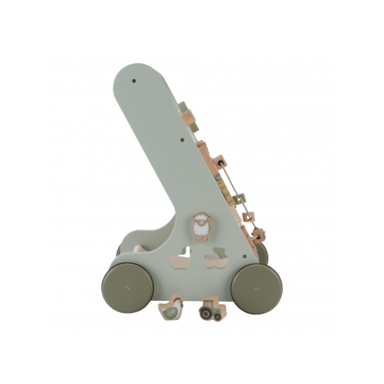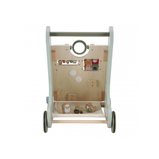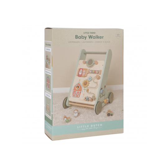 Dřevěné multifunkční chodítko se stabilní konstrukcí je ideální pro trénování chůze dětí od 12 měsíců, které jsou téměř připraveny učinit první kroky. Užijte si společně radostné okamžiky, když vaše dítě poprvé přejde celou místnost! Chodítko zároveň nabízí řadu zajímavých aktivit pro zkoumání a pozorování. Pohyblivé a otáčivé části s s krásnými ilustracemi motivů ze života na farmě dítě zabaví a zároveň podporují rozvoj jeho motorických dovedností. Gumová kolečka nebudou dělat žádné stopy na podlaze a jsou bezpečná pro použití v interiéru. Chodítko je součástí designové kolekce hraček a doplňků Little Dutch Farma. Vyrobeno z dřeva certifikovaného FSC. Rozměry: 32,5 x 35,5 x 49 cm Vhodné pro děti od 12 měsíců.