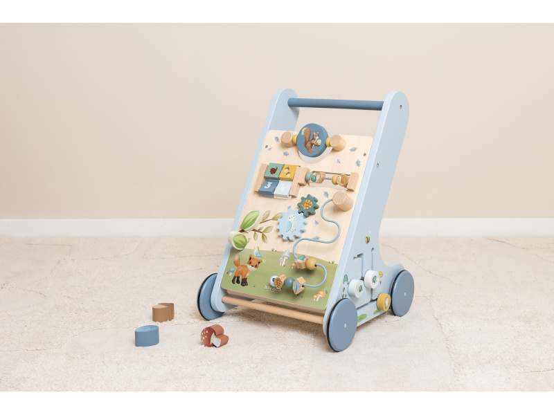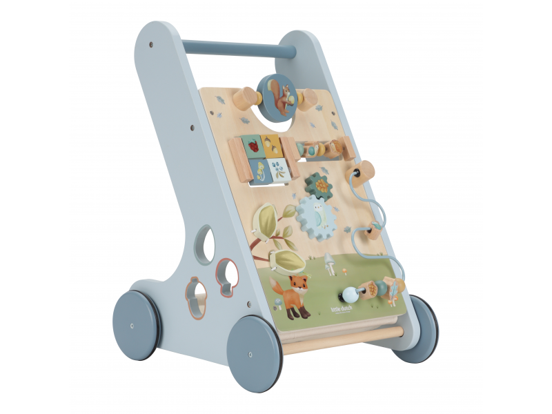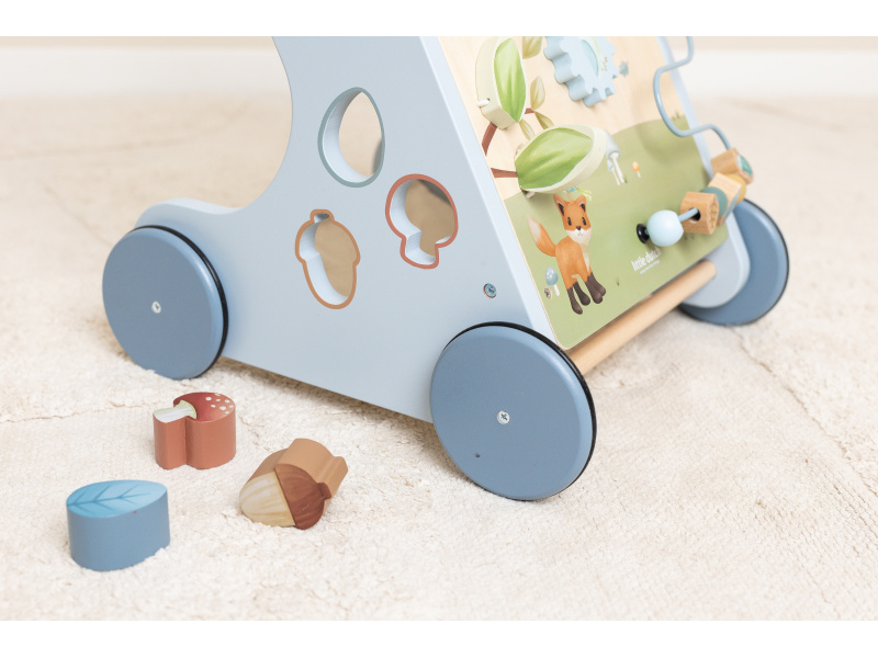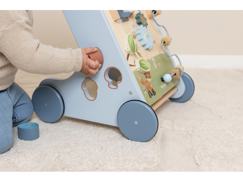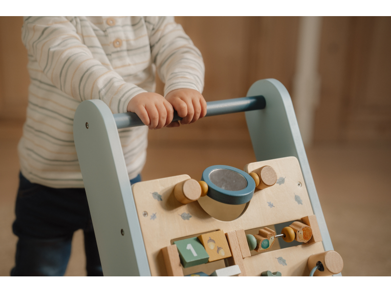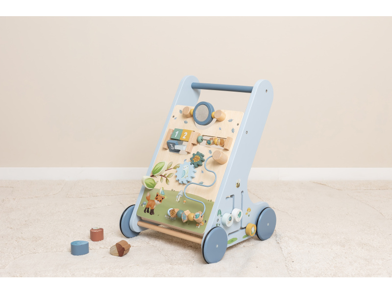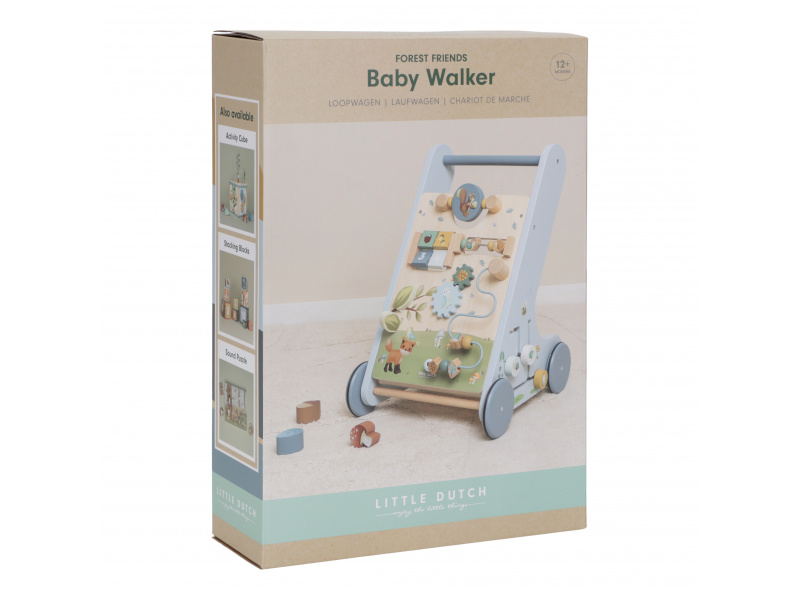 Dřevěné multifunkční chodítko se stabilní konstrukcí je ideální pro trénování chůze dětí od 12 měsíců, které jsou téměř připraveny učinit první kroky. Užijte si společně radostné okamžiky, když vaše dítě poprvé přejde celou místnost! Chodítko zároveň nabízí řadu zajímavých aktivit pro zkoumání a pozorování. Pohyblivé a otáčivé části s s krásnými ilustracemi motivů ze života v lese dítě zabaví a zároveň podporují rozvoj jeho motorických dovedností. Gumová kolečka nebudou dělat žádné stopy na podlaze a jsou bezpečná pro použití v interiéru. Chodítko je součástí designové kolekce hraček a doplňků Little Dutch Forest Friends inspirované životem v lese. Vyrobeno z dřeva certifikovaného FSC. Rozměry: 32,5 x 35,5 x 49 cm Vhodné pro děti od 12 měsíců.