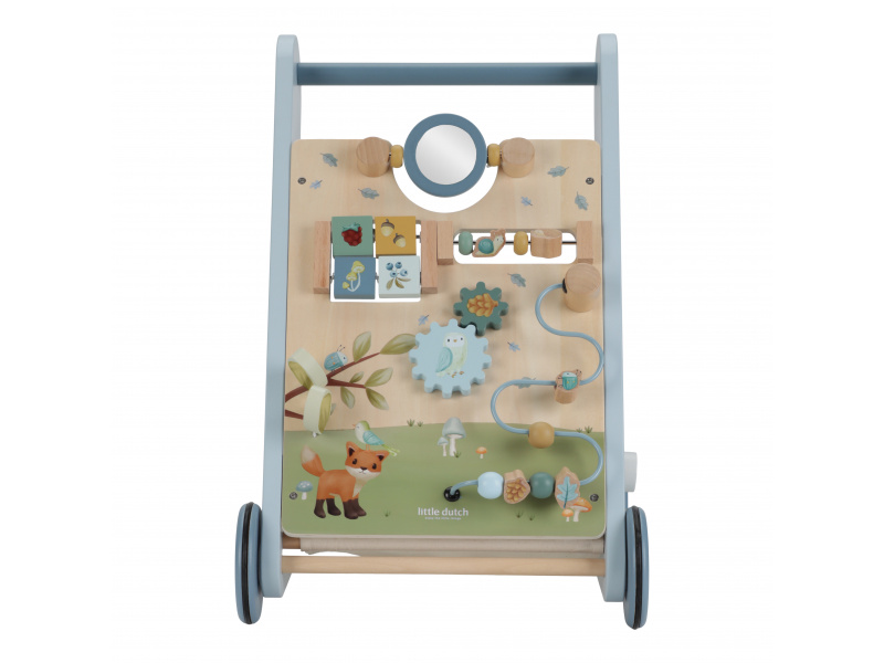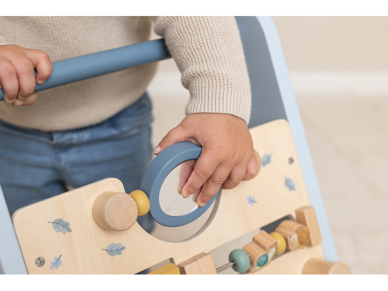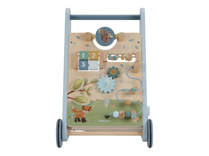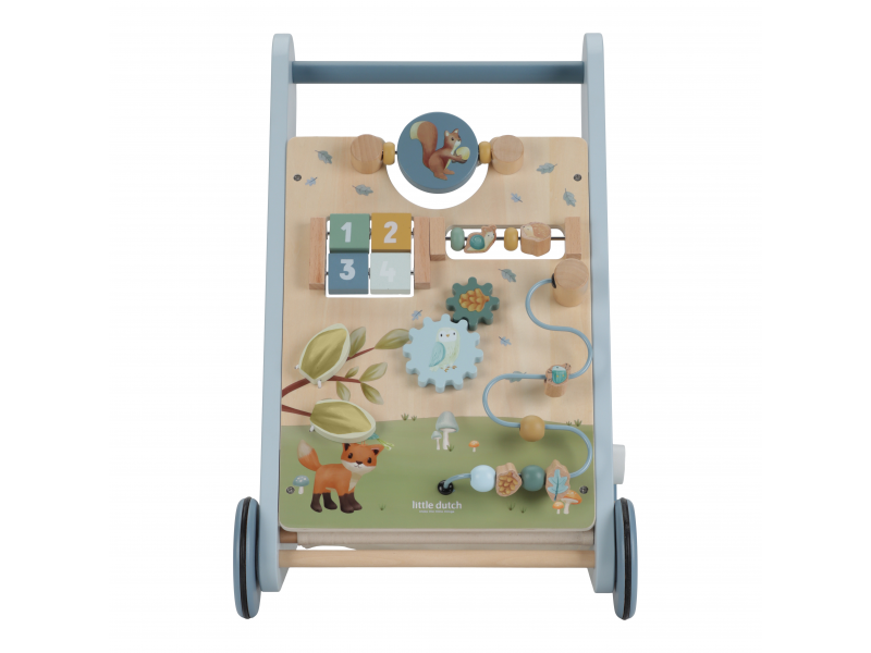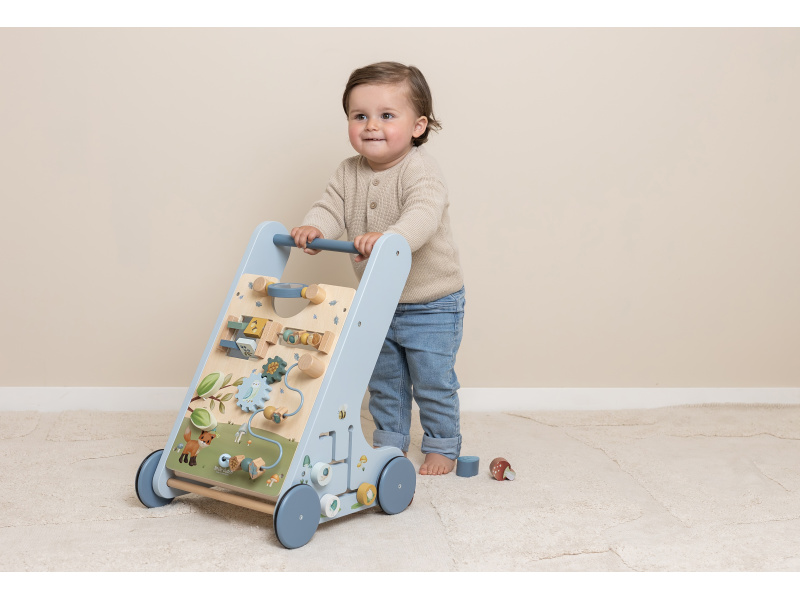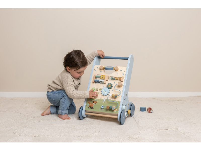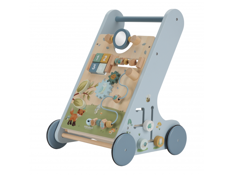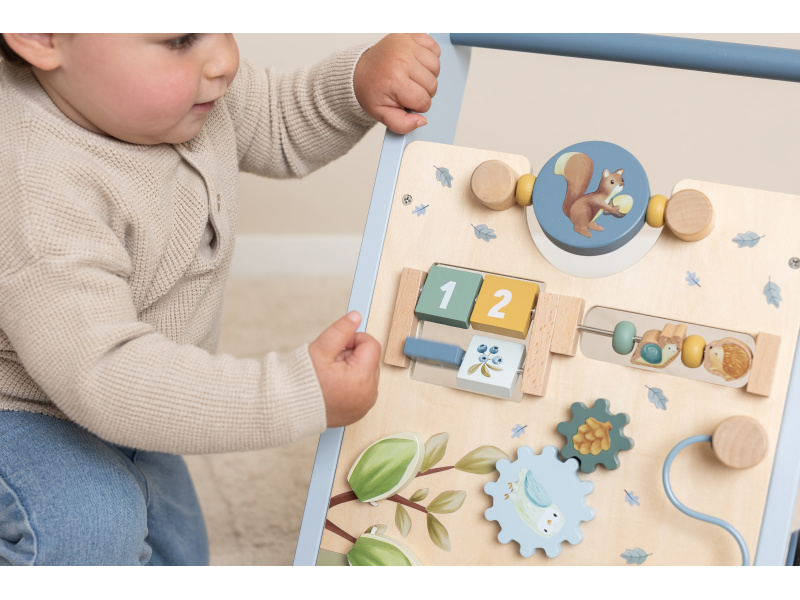 Dřevěné multifunkční chodítko se stabilní konstrukcí je ideální pro trénování chůze dětí od 12 měsíců, které jsou téměř připraveny učinit první kroky. Užijte si společně radostné okamžiky, když vaše dítě poprvé přejde celou místnost! Chodítko zároveň nabízí řadu zajímavých aktivit pro zkoumání a pozorování. Pohyblivé a otáčivé části s s krásnými ilustracemi motivů ze života v lese dítě zabaví a zároveň podporují rozvoj jeho motorických dovedností. Gumová kolečka nebudou dělat žádné stopy na podlaze a jsou bezpečná pro použití v interiéru. Chodítko je součástí designové kolekce hraček a doplňků Little Dutch Forest Friends inspirované životem v lese. Vyrobeno z dřeva certifikovaného FSC. Rozměry: 32,5 x 35,5 x 49 cm Vhodné pro děti od 12 měsíců.