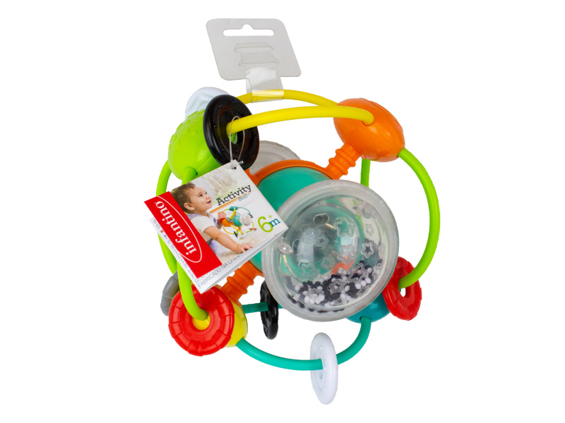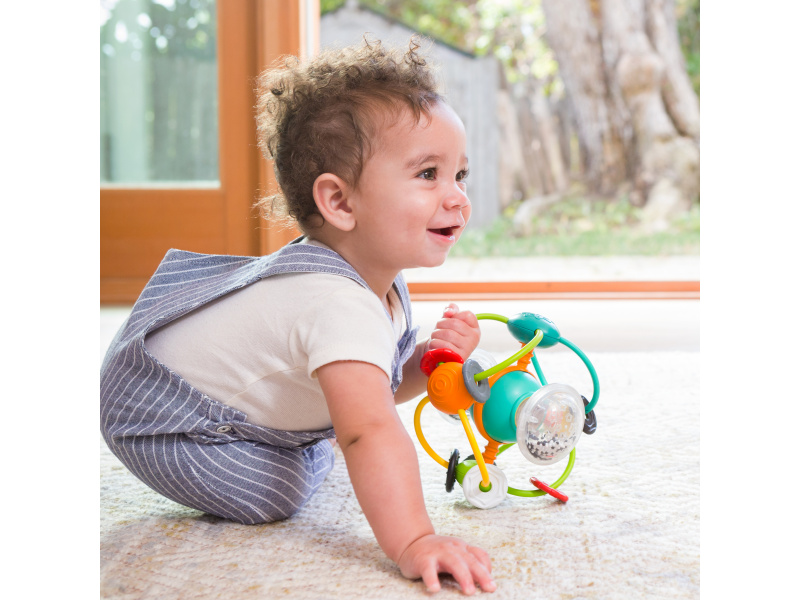 Hračka nabízí množství různorodých pohyblivých a chrasticích částí ve výrazných kontrastních barvách, které lákají dítě ke zkoumání. Její provedení umožňuje snadné uchopění dětskými ručičkami. Rozměry: 14 x 14 x 16 cm Vhodné pro děti od 6 měsíců.