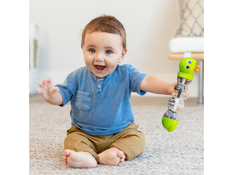 Hračka ve tvaru usměvavé housenky je naplněná kuličkami, které při pohybu jemně chrastí. Rozměry: 24 x 5 x 6 cm Vhodné pro děti od 6 měsíců.