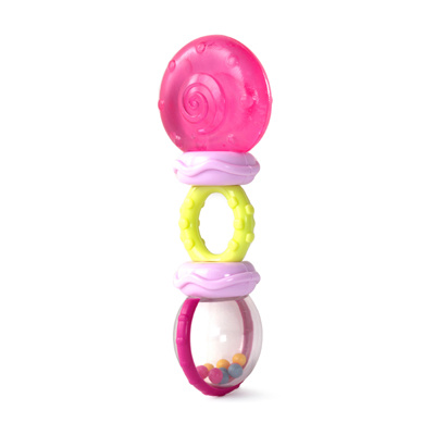 "Chrastítko/Kousátko, 3m+ " Úleva při kousání a chrastící zábava činí z tohoto kousátka/chrastítka jedno z nejoblíbenějších. Struktura a zvuk upoutají pozornost dítěte. Barevné kuličky vesele chrastí. Chrastítko obsahuje kousátka v podobě kroužků, které masírují dásně dítěte. "Vlastnosti výrobku:" - barevné otočné chrastítko pomáhá vyvíjet koordinaci rukou a očí - 3 strukturované, posuvné korálky - oválná rukojeť s povrchem vhodným ke kousání Adresa dodavatele: KIDS2 EUROPE BV 5 Keizersgracht 287, 1016 ED Amsterdam, Netherlands; +31 20 241 0934