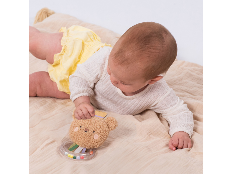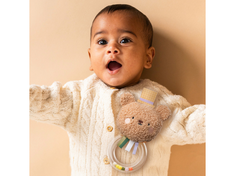 Chrastítko tvoří měkká plyšová hračka ve tvaru roztomilého medvídka Brendona a průhledný plastový kroužek naplněný barevnými korálky. Různé tvary a povrchy hračky podněcují dítě ke zkoumání rukama i ústy a pomáhají rozvíjet jemnou motoriku a smysly dítěte. Vhodné pro děti od narození.