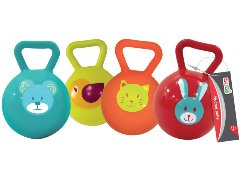 Měkké chrastítko ve tvaru míčku s držadlem pro snadné uchopení. Chrastítko je dodáváno v různých barvách a s různým potiskem zvířátek. Balení / 1 ks. Vhodné pro děti od 3 měsíců.
