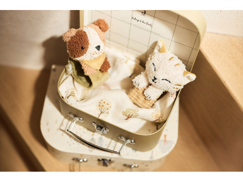 Roztomilé chrastítko na ruku ve tvaru pejska se stane prvním zábavným kamarádem vašeho miminka. Díky svému provedení v podobě náramku zůstane vždy po ruce – doslova! Každý pohyb dítěte vyvolá veselý zvuk, který podporuje zvídavost a motorický vývoj. Jemný materiál s žlutými proužky je příjemný na dotek a ideální pro malé ručičky Chrastítko vydává jemný, hravý zvuk při každém pohybu a rozvíjí tak sluchové vnímání Díky pohodlnému pásku na zápěstí zůstává hračka vždy nablízku – i při aktivním pohybu miminka Stimuluje koordinaci pohybů, hmat i sluch Složení: 100% polyester Rozměry: 19 × 8 × 5 cm Možno prát v ruce. Vhodné pro děti od narození.