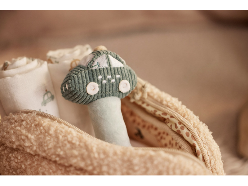 Chrastítko v podobě autíčka z měkkého textilního materiálu má tvar pro snadné uchopení a při pohybu jemně chrastí. Rozměry: 13 x 6 x 3 cm Složení: 100% polyester Možno prát v ruce. Vhodné pro děti od narození.