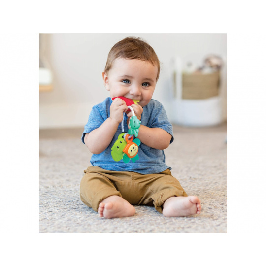 Bezpečné chrastítko a kousátko dítě zabaví i uleví jeho citlivým dásním při prořezávání zoubků. Tvar hračky umožňuje snadné uchopení dětskými ručičkami. Vhodné od narození.