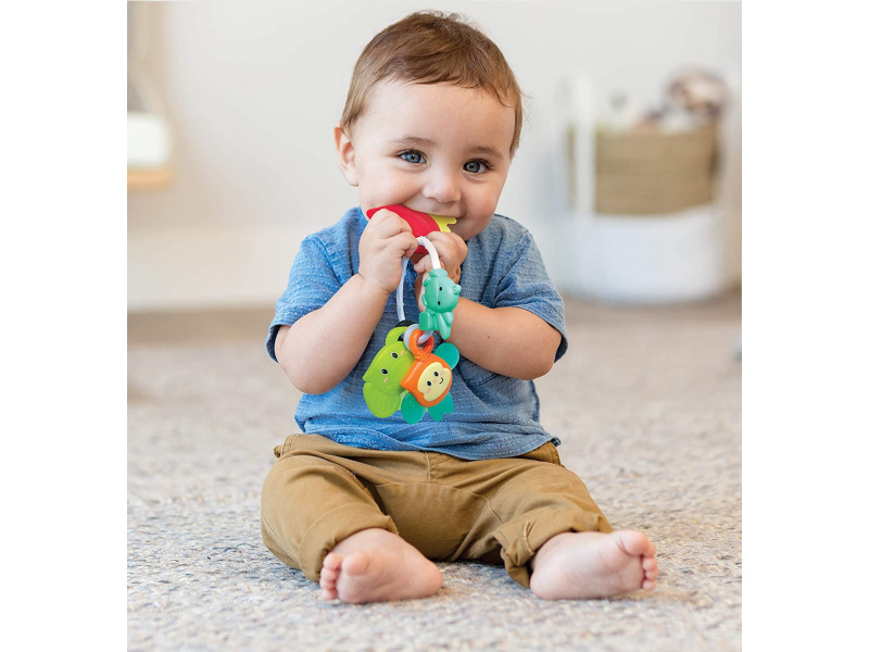 Bezpečné chrastítko a kousátko dítě zabaví i uleví jeho citlivým dásním při prořezávání zoubků. Tvar hračky umožňuje snadné uchopení dětskými ručičkami. Vhodné od narození.