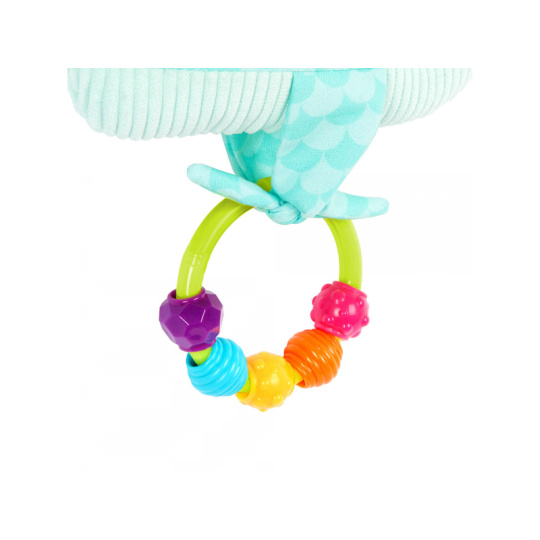 Plyšové chrastítko v podobě velryby nabízí různorodé textury, pohyblivé korálky i šusticí části. Hračka láká dítě ke zkoumání a pomáhá rozvíjet jednotlivé smysly dítěte. Vhodné pro děti od narození.