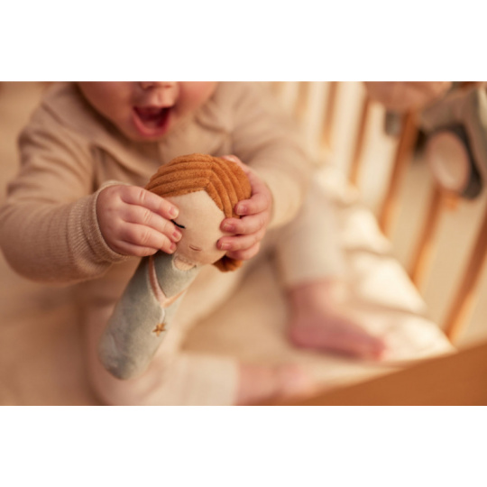 Chrastítko v podobě něžné víly z měkkého textilního materiálu má tvar pro snadné uchopení a při pohybu jemně chrastí. Rozměry: 15 x 12 x 3 cm Složení: 100% polyester Možno prát v ruce. Vhodné pro děti od narození.